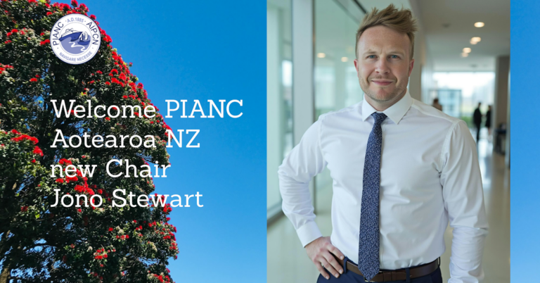 Welcome to Jonathan (Jono) Stewart as the new Chair of PIANC Aotearoa New Zealand, taking up the leadership role from the legendary Matt McKee. Jono has served as Deputy Chair of the Chapter for the past two years, providing leadership to the committee and playing a key role in organising