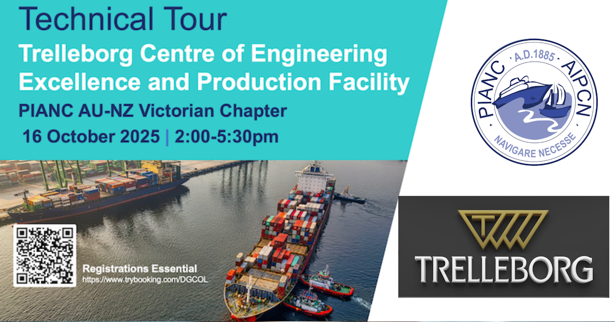 PIANC AU-NZ’s Victorian Regional Chapter invites members to an exclusive facility visit at Trelleborg Marine and Infrastructure's local docking and mooring operations on Thursday October 16 from 2:00-5:30 PM. The afternoon will begin at the Trelleborg Engineering Centre of Excellence in Clayton (Vic), where we'll see how their team handles design and project management for ... Read more